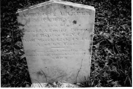 Found in 1830 Early County census. Wife and one male listed with Ambrose. Found in 1840 Early County census. Wife and three males listed with Ambrose. Wife Elizabeth found in 1850 Early County census, with Grandson Joseph Collier (age 20 years). Wife Elizabeth found living alone in 1860 Early County census. Daughter Sarah Vickers Perry married her cousin, Joel Washington Perry, the son of Thornton Perry. They were married by Elder Samuel Johnson, a Methodist Minister. Marker at Perry Cemetary7 Ambrose Harper Perry headstone at Perry Cemetary7 Elizabeth Scarborough Perry headstone at Perry Cemetary7 |